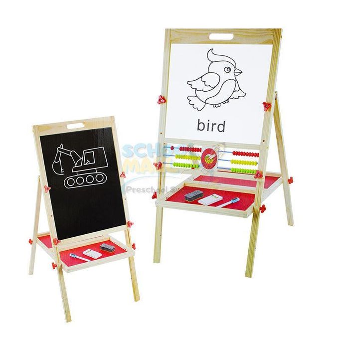 Notre chevalet d'art ajustable en bois pour enfants a 2 côtés au choix, soit la surface du tableau ou le tableau blanc effaçable à sec! Permettez à votre enfant d'âge préscolaire d'explorer les deux options tout en apprenant à écrire et à dessiner.