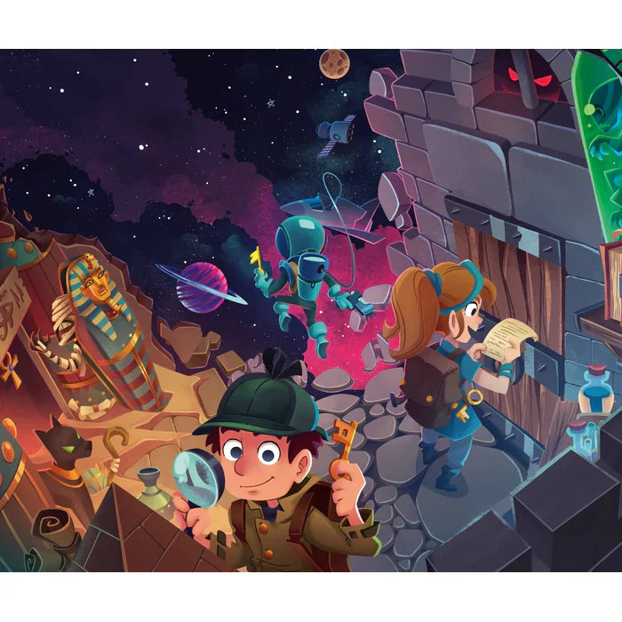Tout comme dans un Escape Game, les enfants devront résoudre les énigmes cachées dans les 3 aventures différentes qui se déroulent dans l'espace, dans la tombe du Pharaon et dans un château.