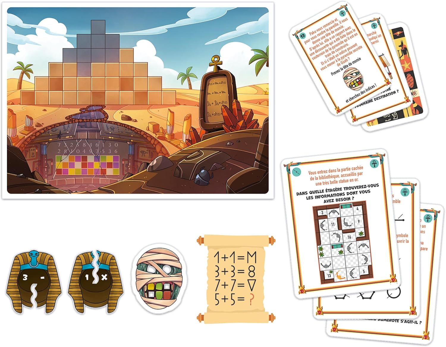 - Indices et objets à découvrir : Pour avancer dans l'aventure, les enfants devront trouver des indices dissimulés sur les plateaux et les cartes, ainsi que des objets utiles pour résoudre les énigmes. Cette recherche d'indices ajoute une dimension d'exploration et de découverte à l'expérience de jeu.