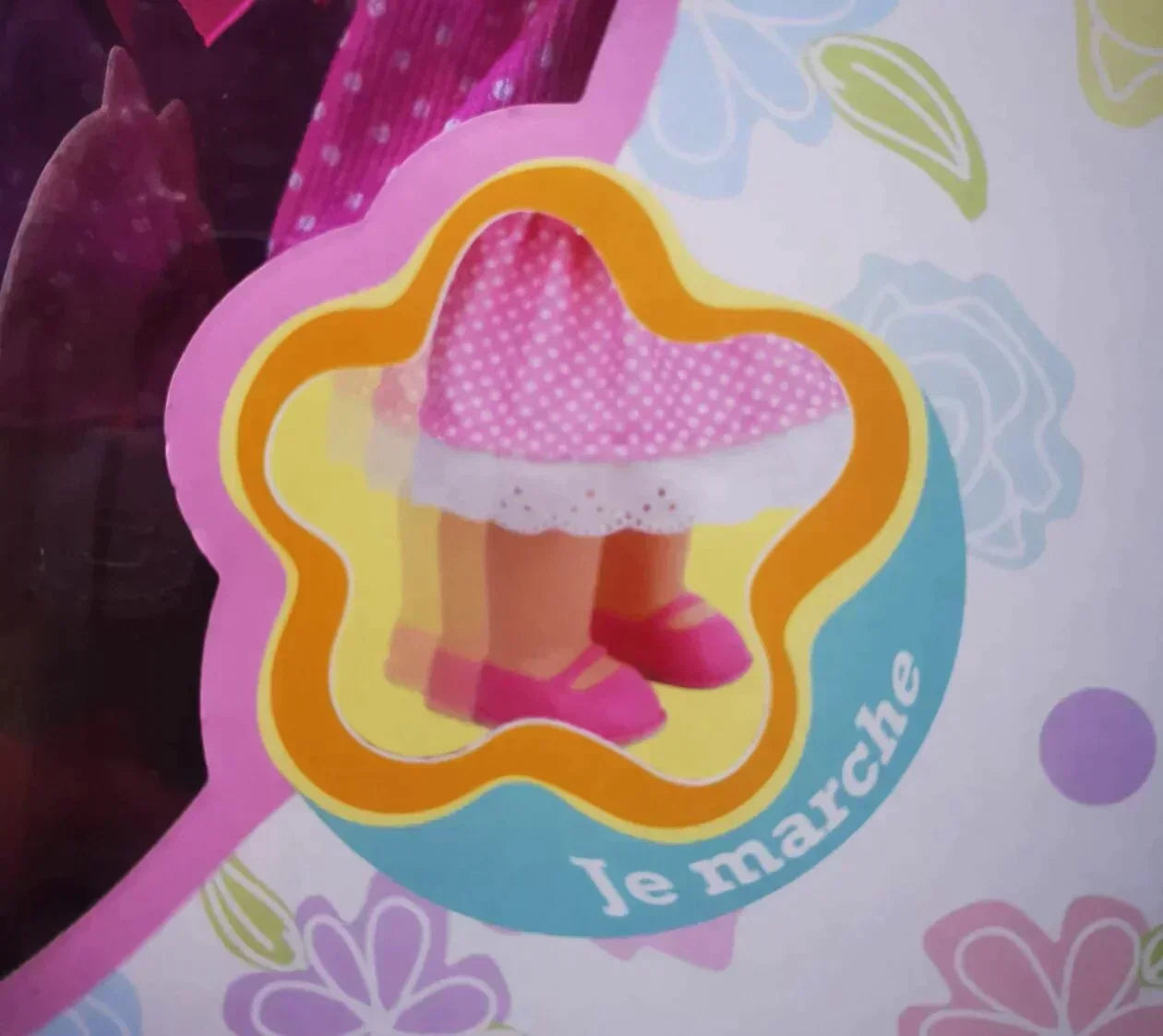 Poupée qui parle et marche 3ans+ plaira à toutes les petites filles! Vêtue d’une robe rose bordée de dentelle agrémentée d’un joli nœud blanc, et chaussée de mignons souliers.